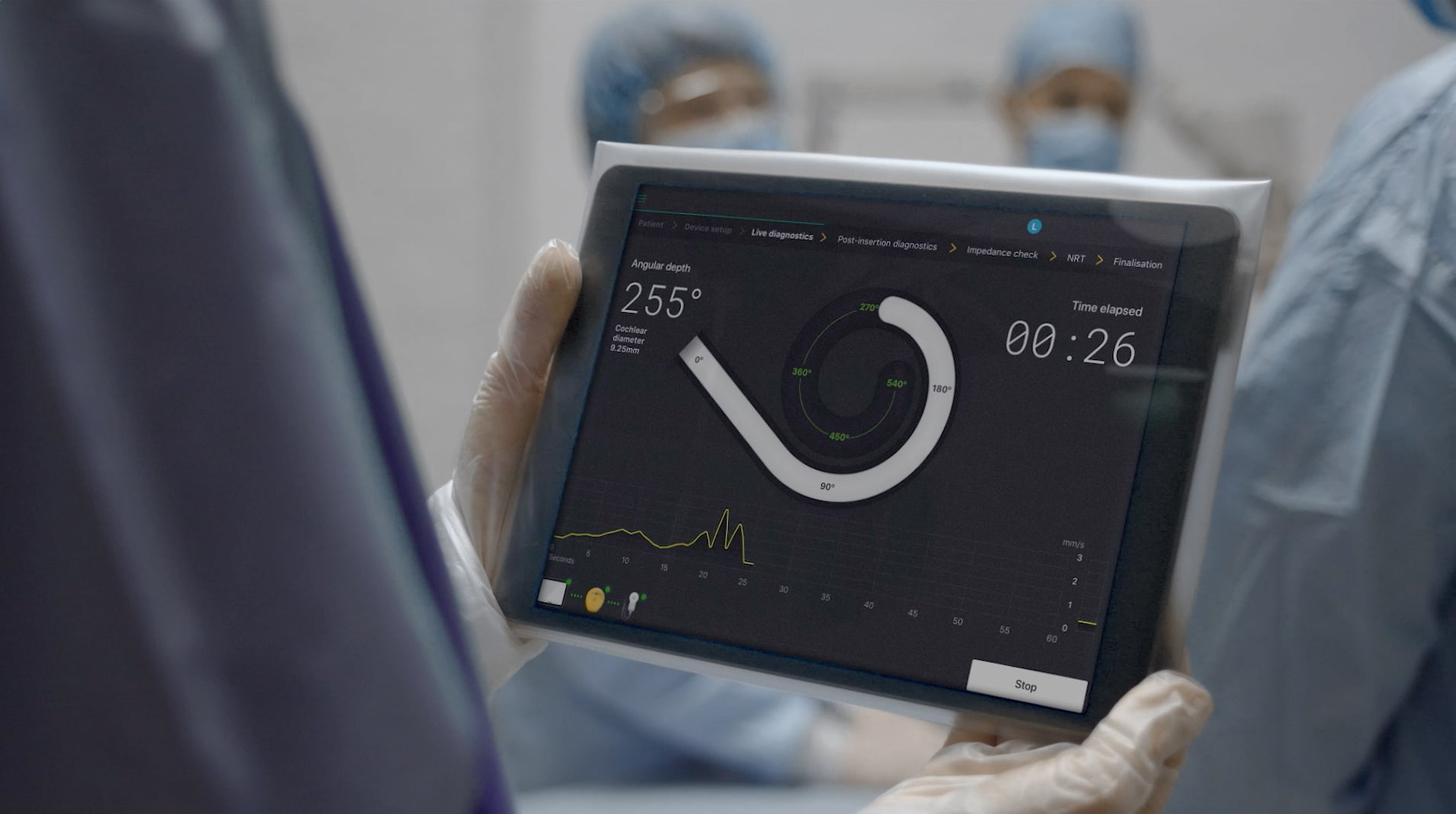The Nucleus® SmartNav system is a new tool that supports surgeons by providing wireless, real-time, and actionable intraoperative insights. It helps them to both visualise their insertion and navigate the electrode insertion in the operating theatre.
